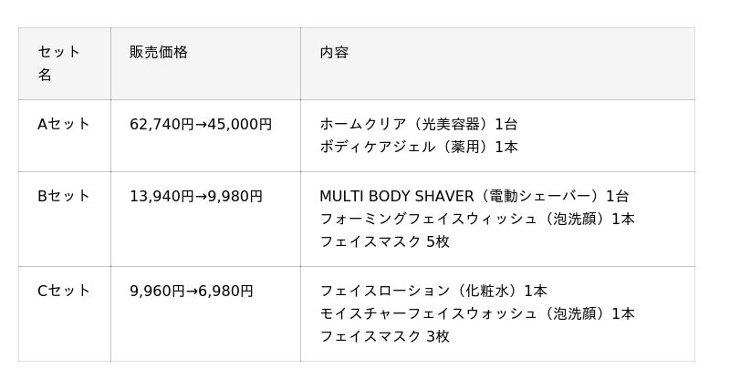 本格脱毛ケアから身だしなみセットまで。一年をアップグレードする特別商品を販売