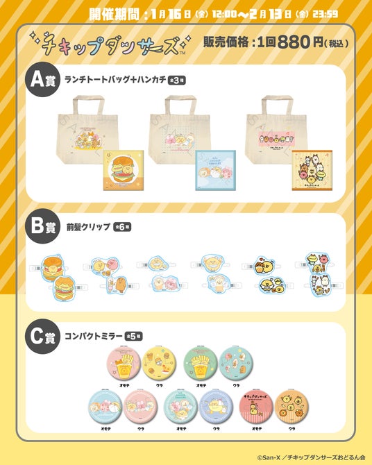 キャラクターグッズの企画・製造・販売を手がけるシンクイノベーション株式会社( 代表取締役:三輪直之、本社:愛知県名古屋市)が、 『チキップダンサーズ』の オンラインくじを下記サイトにて1月16日(金)から開始いたしました。