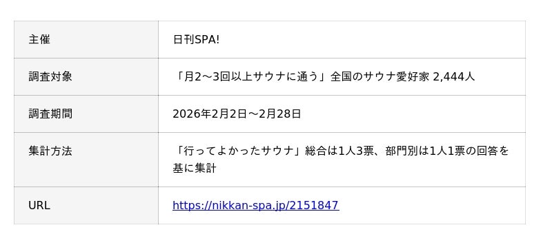 株式会社アドウェイズ(本社:東京都新宿区、代表取締役社長:山田 翔、以下アドウェイズ)の子会社である株式会社オールドルーキー(本社:東京都新宿区、代表取締役社長:岡村 陽久)が運営するオールドルーキーサウナは、Webメディア「日刊SPA!」が主催する第6回「サウナ大賞」において、新宿駅新南口店・銀座中央通り店・渋谷忠犬ハチ公口店の3店舗が「総合ランキング」トップ10に、「オールドルーキーサウナホテル 木更津金田」が「宿泊部門」第2位にランクインいたしました。