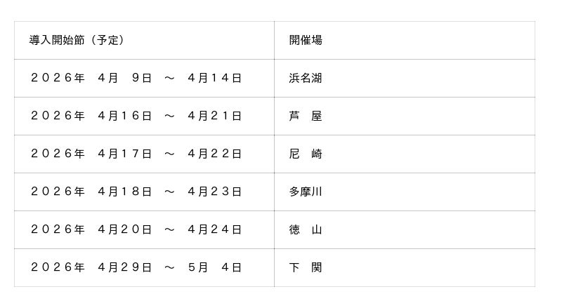 テスト実施の結果、競技内容に影響なく、航走性能に問題がないことが確認できたため、2026年4月9日初日のBOATRACE浜名湖「ルーキーシリーズ第8戦 スカパー!JLC杯」より、各競走場のモーター入替に合わせて、順次E30ガソリンを導入いたします。