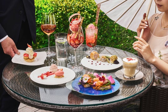 やわらかな陽光に包まれる季節、空へと広がるセント レジス ホテル 大阪12階の「天空の庭」テラスに、春の風がそっと通り抜けます。ロゼワインを片手に、彩り豊かな料理やスイーツを囲む、華やかなひと時。空の色がゆるやかに移ろう中で、その瞬間を分かち合う歓びが、静かに心に刻まれていきます。