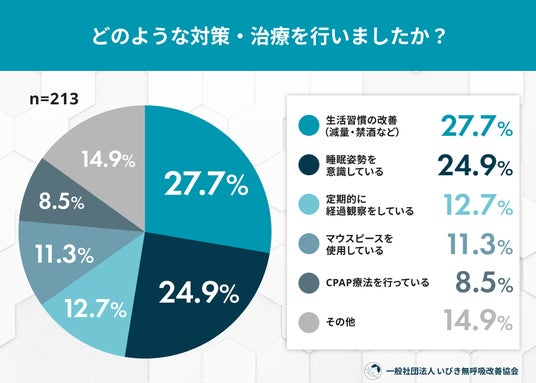 → 専門的な治療と並行して、減量などの「生活習慣の改善」や、横向きに寝るなどの「睡眠姿勢の工夫」を自ら取り入れている当事者が多いことがわかります。