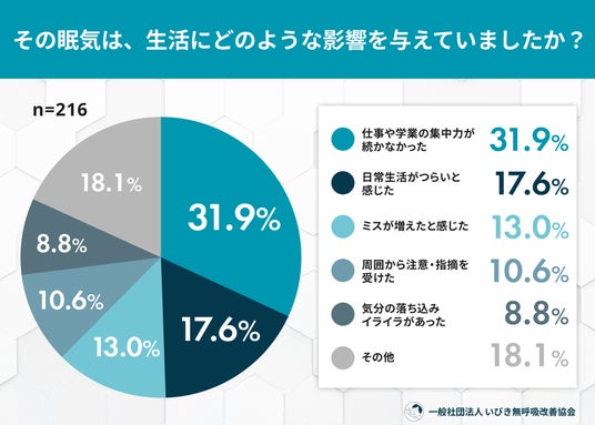 → 集中力の欠如やミスの増加だけでなく、約2割の方が「日常生活がつらい」と感じていました。精神的な落ち込みやイライラなど、メンタル面への影響も無視できない状況です。