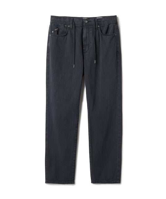 本モデルは、YANUKの定番モデル「PHILIP」をベースに、MEN'S BIGIの視点でシルエットや仕様を別注。程よいゆとりを持たせたテーパードシルエットに調整することで、リラックス感がありながらもすっきりとした印象に仕上げています。素材には、綿・レーヨン・麻をブレンドしたストレッチデニムを採用。麻のナチュラルな風合いとレーヨンの滑らかさが融合することで、軽やかで柔らかな履き心地を実現し、従来のデニムにありがちな硬さやストレスを軽減しています。