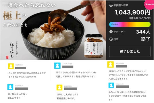 2026年3月23日(月)〜4月12日(日)の21日間、クラウドファンディングサイト「Makuake」にて先行販売を実施。結果1,043,900円を販売し、「今回も期待して待っています」「久しぶりのホリニシさんの新商品なのでとても楽しみにしております!」「めちゃくちゃ楽しいものの開発ありがとうございます!到着を楽しみに待ってます!」など、多くのお客様から期待の声をいただきました。