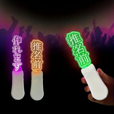 アクリルのメインカラーはクリア。内蔵のLEDライトは、赤、緑、ピンク、黄色、水色、紫、白、オレンジの8色に発光。8つのオプションの中から色を変えることができる。ひらがな、カタカナ、漢字、一部記号も6文字まで対応可能。アクリルに名前も入れられるので、推し活に最適。