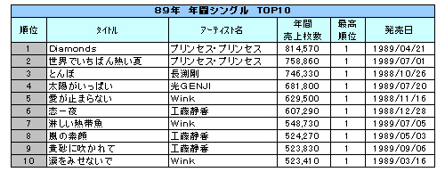 日本のミュージックシーンでは、ガールズバンドの最高峰、PRINCESS PRINCESSが大ブレイク! この年の年間シングル1位、2位は、彼女たちの「Diamonds」(81.5万枚)、「世界でいちばん熱い夏」(75.9万枚)で、彼女たちの活躍ぶりが分かる。