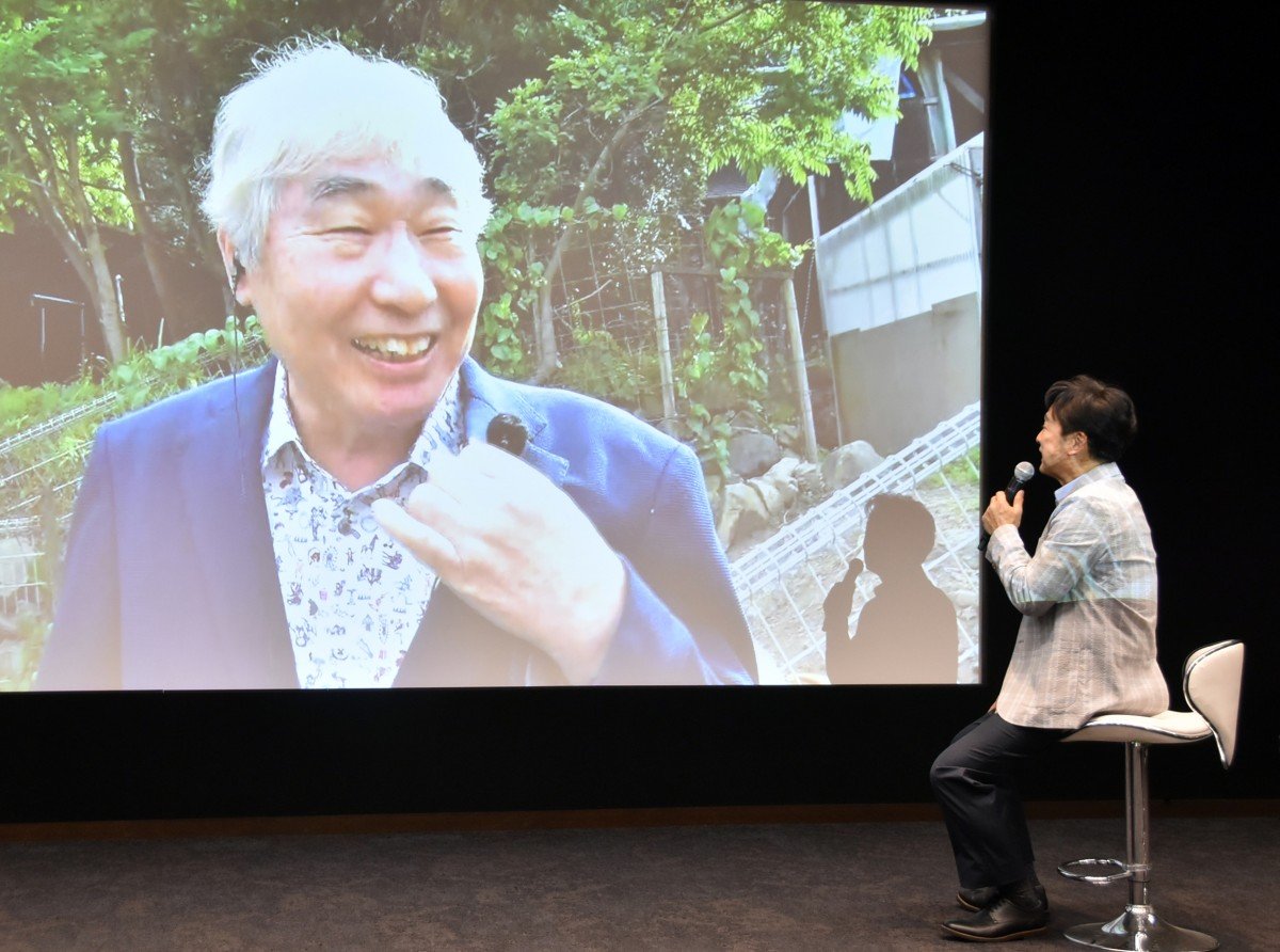 ロケ地から会見に参戦した蛭子能収(モニター)=テレビ東京系バラエティ番組『「太川蛭子の旅バラ」東北横断!ローカル路線バス乗り継ぎの旅〜山形県・余目駅⇒岩手県・宮古〜』の取材会に出席 (C)ORICON NewS inc. (2/2枚)