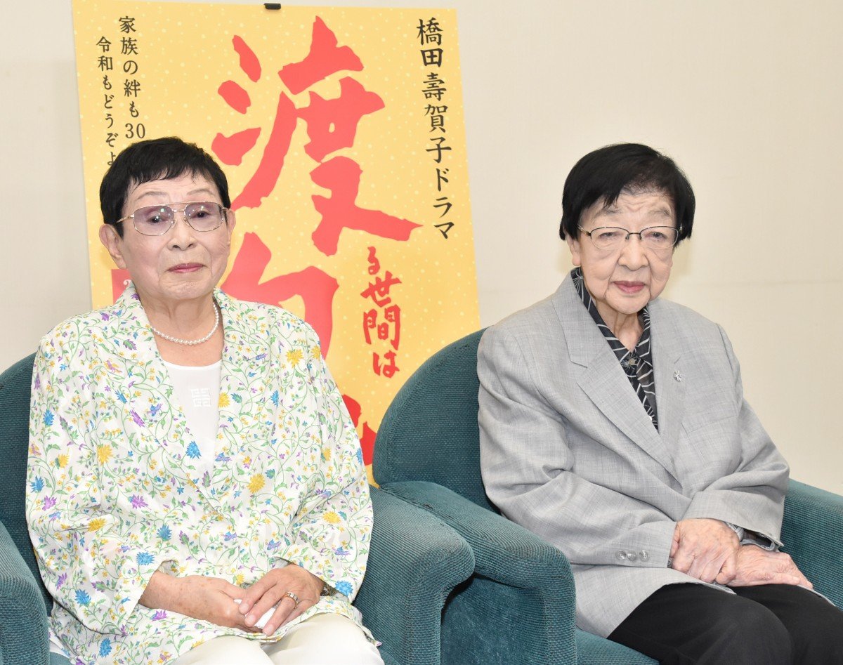 『橋田壽賀子ドラマ 渡る世間は鬼ばかり 3時間スペシャル2019』の囲み取材に出席した(左から)橋田壽賀子氏、石井ふく子氏 (C)ORICON NewS inc. (2/3枚)