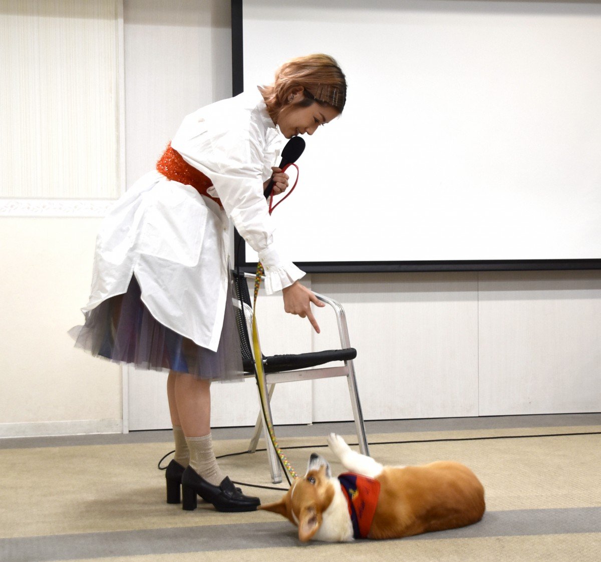 芸を披露するIMALUとバルー =映画『ロイヤルコーギー レックスの大冒険』の愛犬同伴イベント (C)ORICON NewS inc. (2/5枚)
