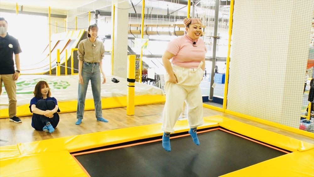 新番組『バナナドライ部』テレビ朝日系で5月17日放送。最新トランポリンに挑戦する渡辺直美(C)テレビ朝日 (2/3枚)