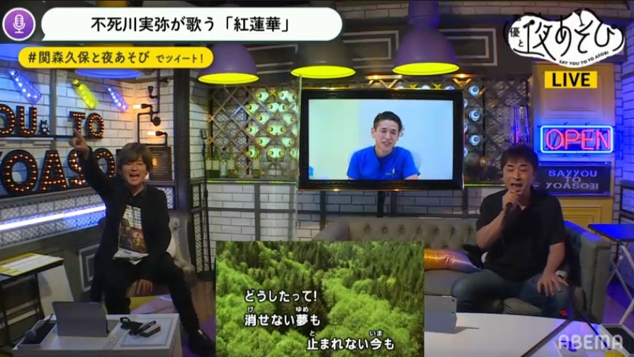『声優と夜あそび』内で「紅蓮華」を熱唱した関智一 (C)ABEMA (2/11枚)