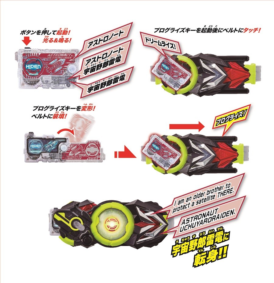 遊び方イメージ=「KAMEN RIDER STORE TOKYO(仮面ライダーストア東京)」で8月24日より「DX宇宙野郎雷電プログライズキー」を販売 (2/2枚)