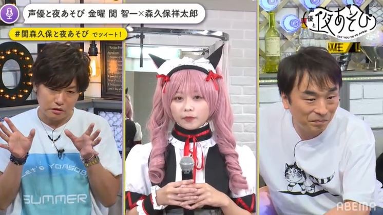 『声優と夜あそび』に出演した(左から)森久保祥太郎、INA、関智一(C)AbemaTV,Inc. (2/5枚)