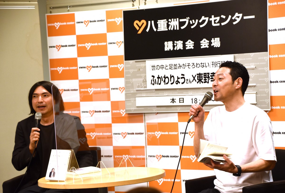 エッセイ集『世の中と足並みがそろわない』刊行記念トークショーを開催したふかわりょう(左)とゲストの東野幸治(右) (C)ORICON NewS inc. (2/5枚)