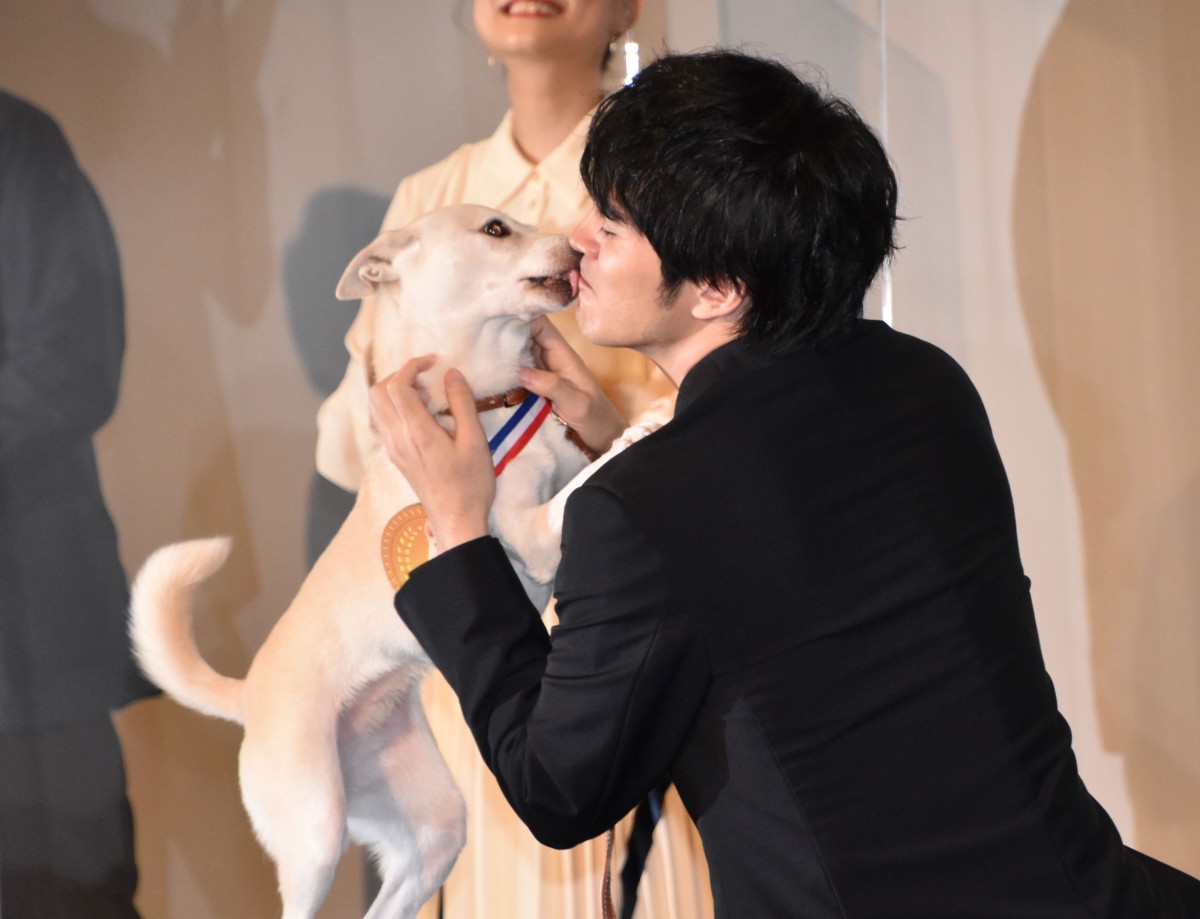 バディ犬・ちえから“熱烈キス”を受ける林遣都 (C)ORICON NewS inc. (2/10枚)
