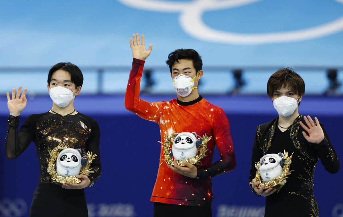(左から)鍵山優真選手、ネイサン・チェン選手、宇野昌磨選手 写真:ロイターアフロ (1/2枚)