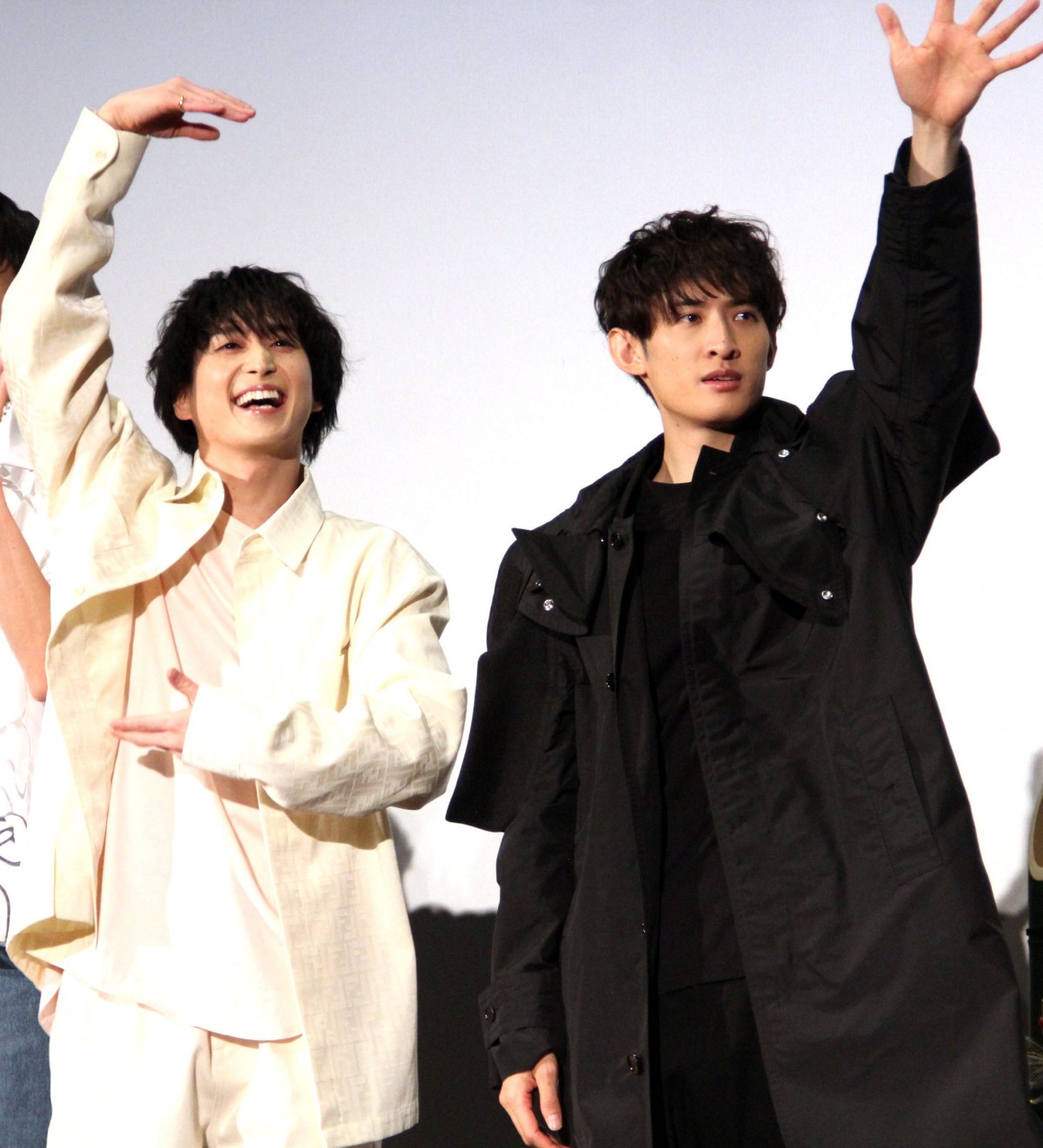 映画『おそ松さん』大ヒット御礼舞台あいさに登場したSnow Man(左から)佐久間大介、向井康二 (C)ORICON NewS inc. (3/3枚)