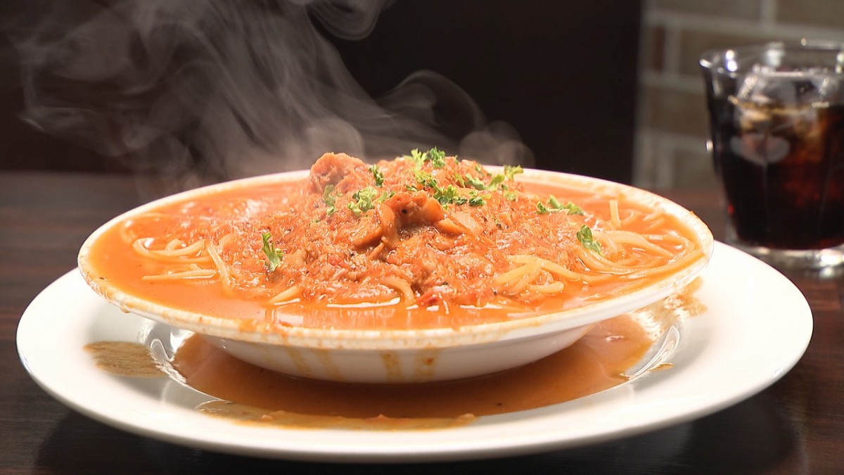 21日放送『ヒューマングルメンタリー オモウマい店』に登場する絶望パスタ「ツナ」(C)中京テレビ (2/16枚)