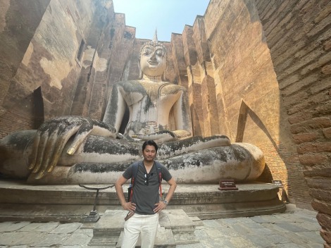 俳優・タレントの今井翼が、鉄道を利用しタイを北から南まで1600キロを縦断するBS日テレの旅番組『今井翼 タイ縦断鉄道の旅』(毎週日曜 後9:00)の14日放送の#9では、念願だった世界遺産・スコータイ歴史公園の旅を送る。巨大な仏像を前に神秘的なパワーを浴び、この旅3回目となるタイの麺に舌鼓を打つ。