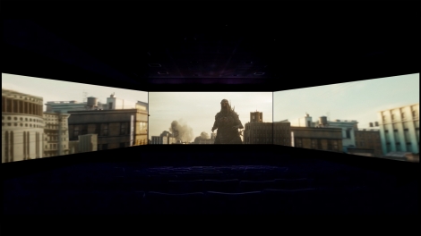 今回、通常のスクリーンでは演出ができない、ゴジラの巨大さの映写が実現。さらに、ゴジラが登場する瞬間の緊張を左右のスクリーンからも感じられるように演出されており、ゴジラから逃げるシーンでは群衆の恐怖と混乱が、ゴジラが都市を破壊するシーンではその強さが伝わってくる、「ScreenX」用に最適化されたバージョンを上映。まるで映画の一場面に実際いるような没入体験が楽しめる。