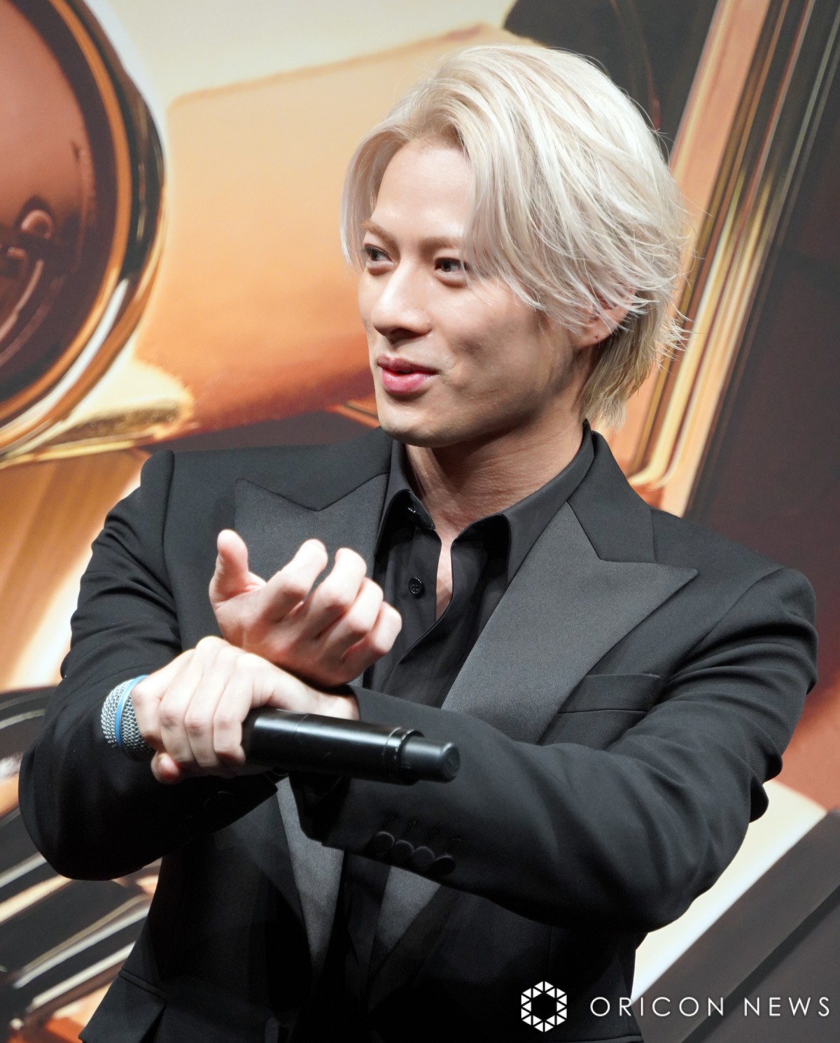 手の甲に香水をつけるルーティンを再現した平野紫耀=『イヴ・サンローラン・ボーテ アジア アンバサダー就任会見』 (C)ORICON NewS inc. (5/7枚)