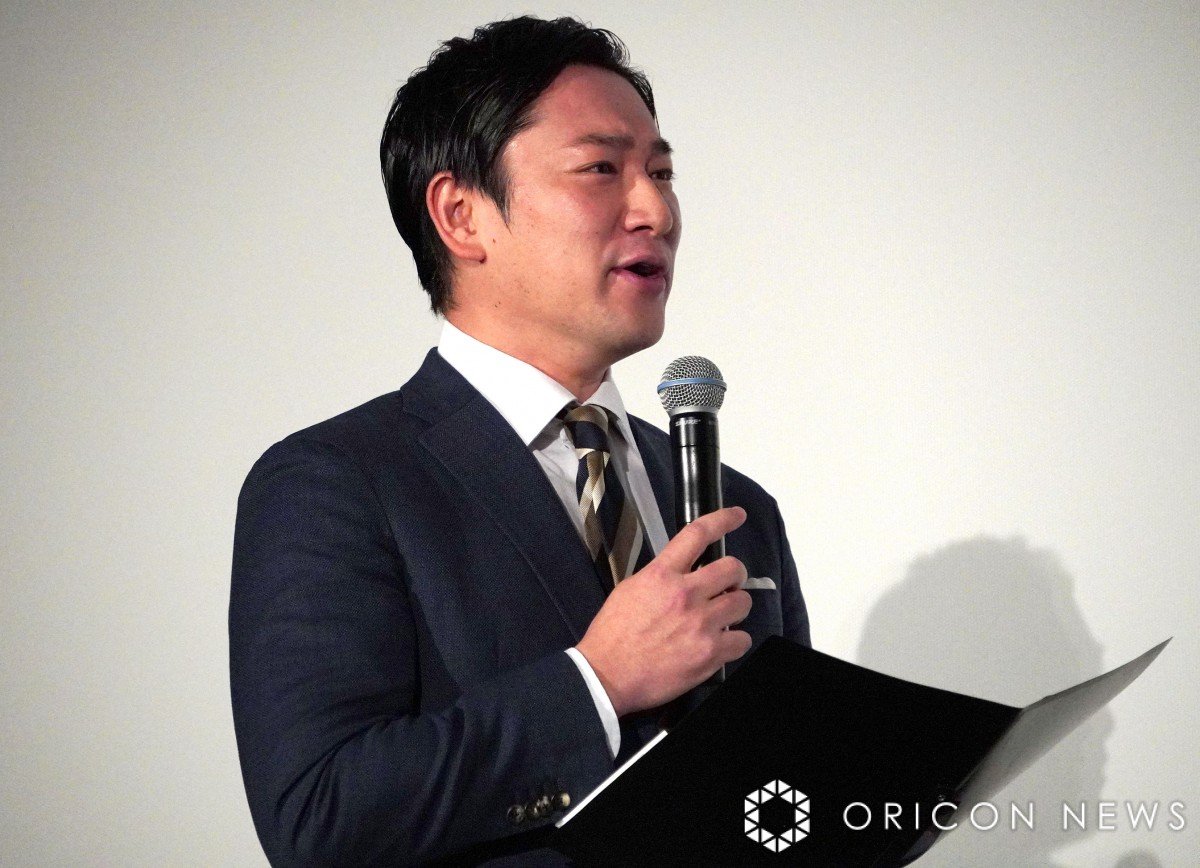 イベントで自虐ネタを放った辻岡義堂アナウンサー=映画『君と世界が終わる日に』公開記念舞台あいさつ(C)ORICON NewS inc. (1/12枚)