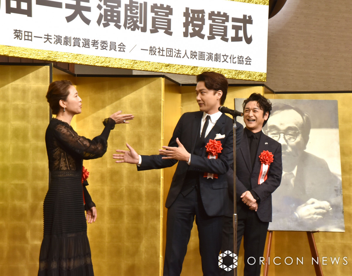 『第四十九回 菊田一夫演劇賞』授賞式に出席した(左から)安蘭けい、井上芳雄、石丸幹二(C)ORICON NewS inc. (2/17枚)