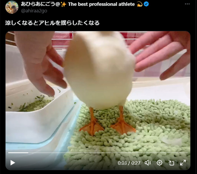 「すんごいもっちもち」アヒルを揺らすだけの動画が大バズリ「ずっと見ていられる…」