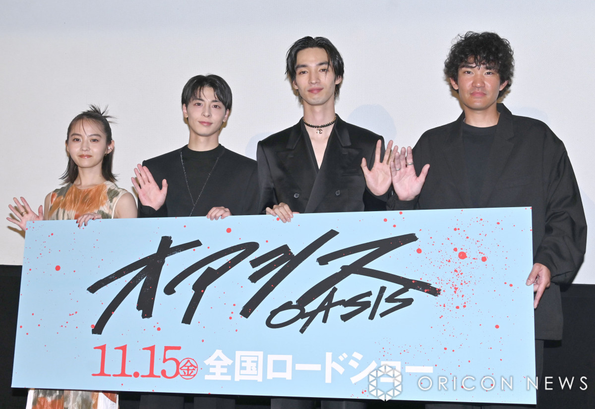 『オアシス』完成披露上映会舞台あいさつに出席した(左から)伊藤万理華、高杉真宙、清水尋也、岩屋拓郎監督(C)ORICON NewS inc. (6/6枚)