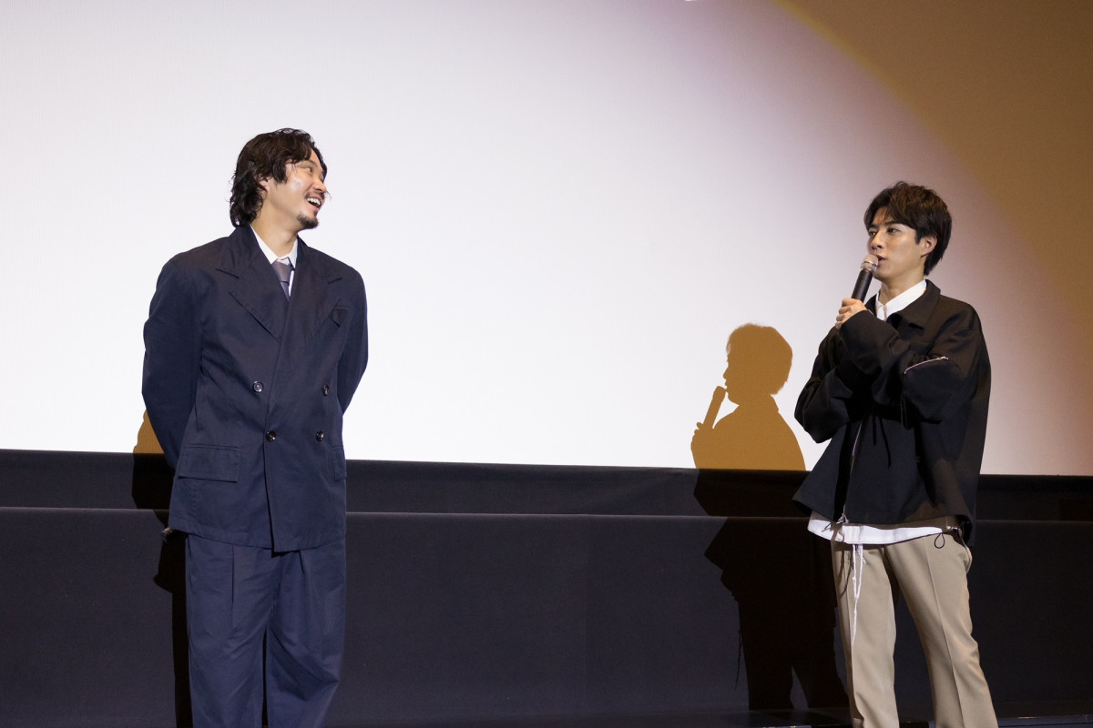 映画『若き見知らぬ者たち』の上映前舞台あいさつに登場した(左から)磯村勇斗、福山翔大 (2/5枚)