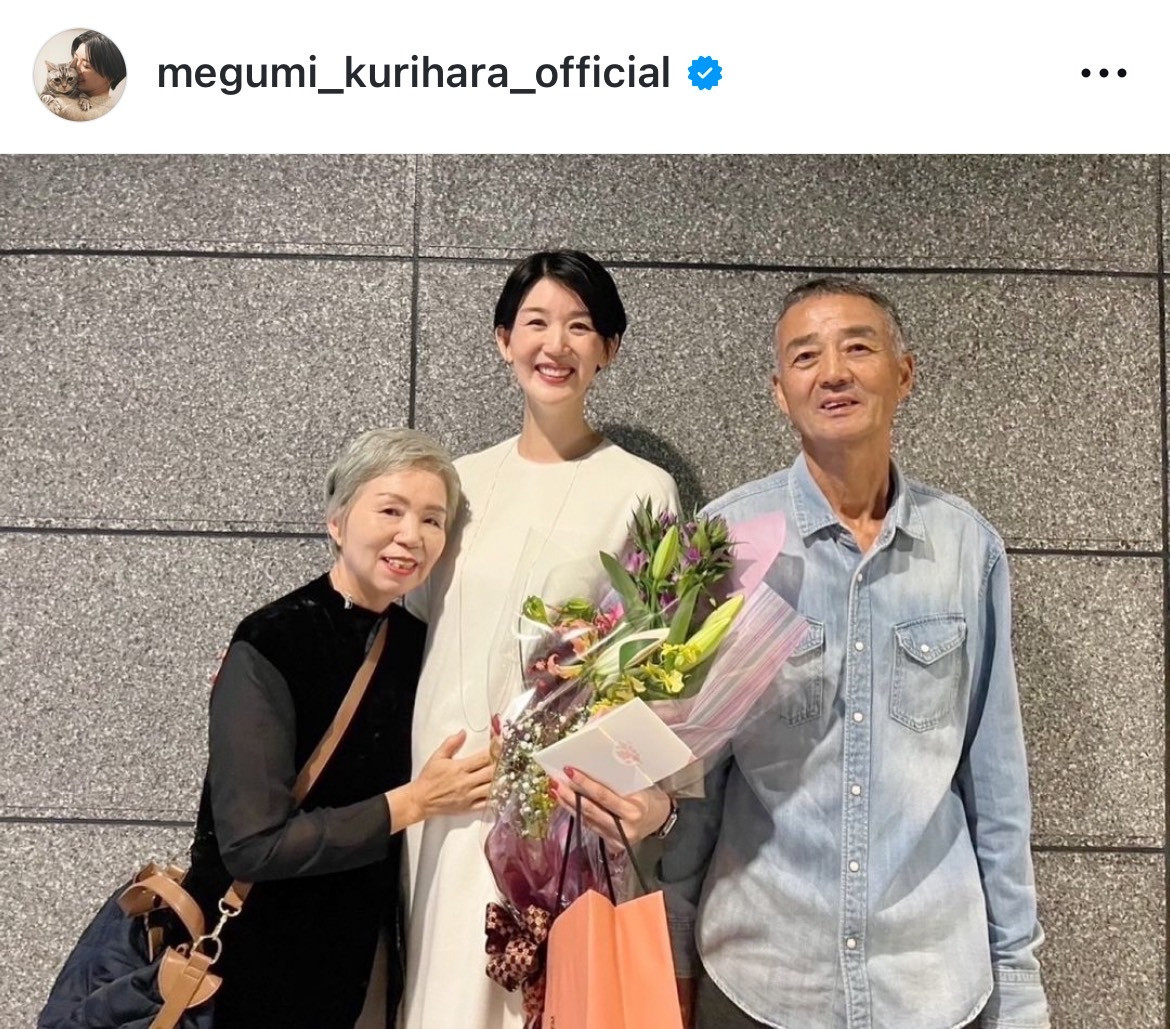 栗原恵「大切な両親と大好きな従姉妹のアキちゃんと」(写真はインスタグラム @megumi_kurihara_official より) (1/3枚)