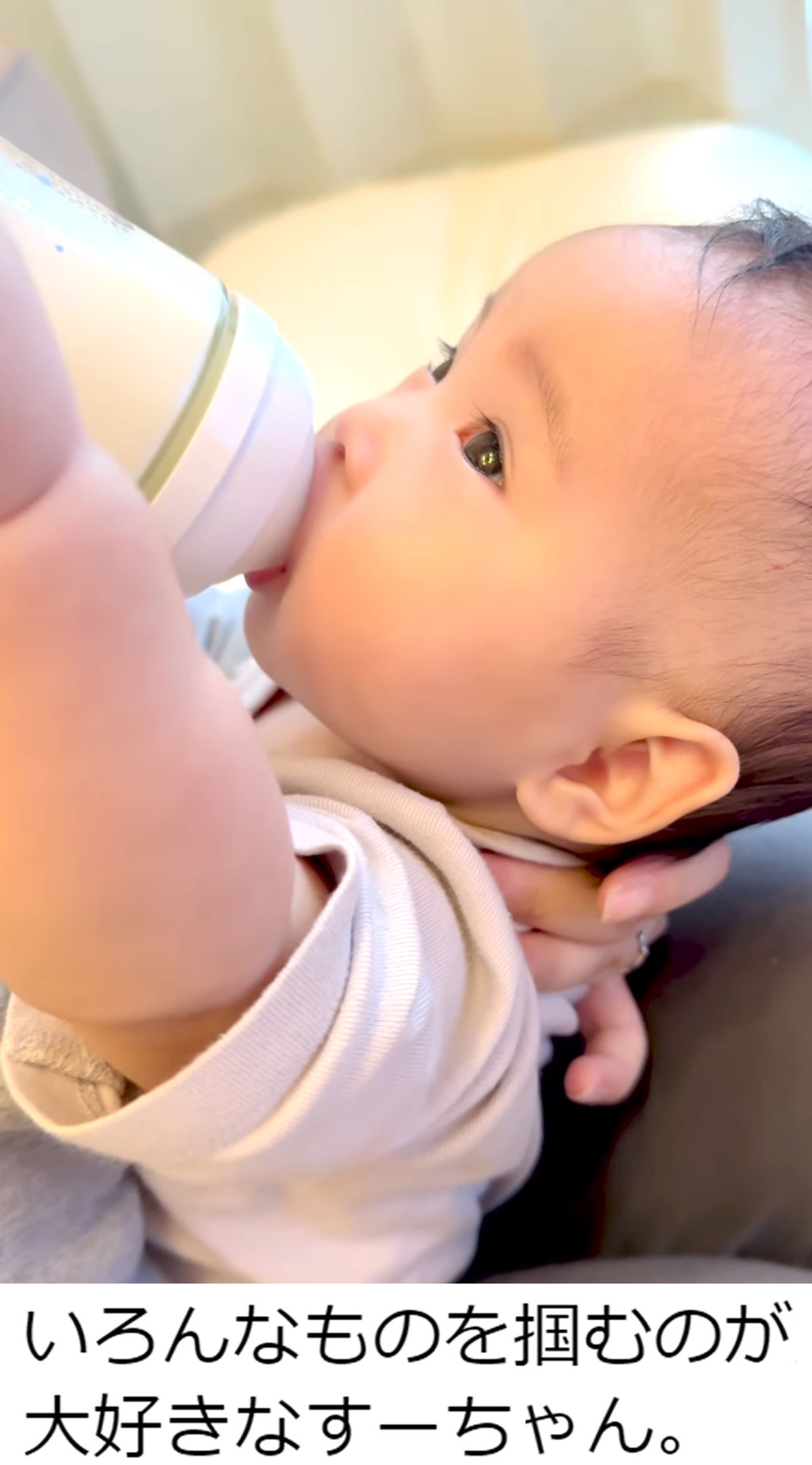 生後4ヵ月の赤ちゃんの“ミルクを飲むクセ”に反響「ママに触れて安心してるのかな〜」「この仕草たまらない」