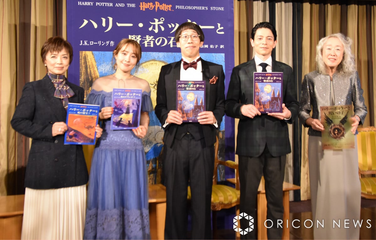 「『ハリー・ポッターと賢者の石』日本発売25周年記念イベント」より(左から)榊原郁恵、大沢あかね、ひょっこりはん、吉沢悠、松岡佑子氏(翻訳家) (C)ORICON NewS inc. (10/11枚)