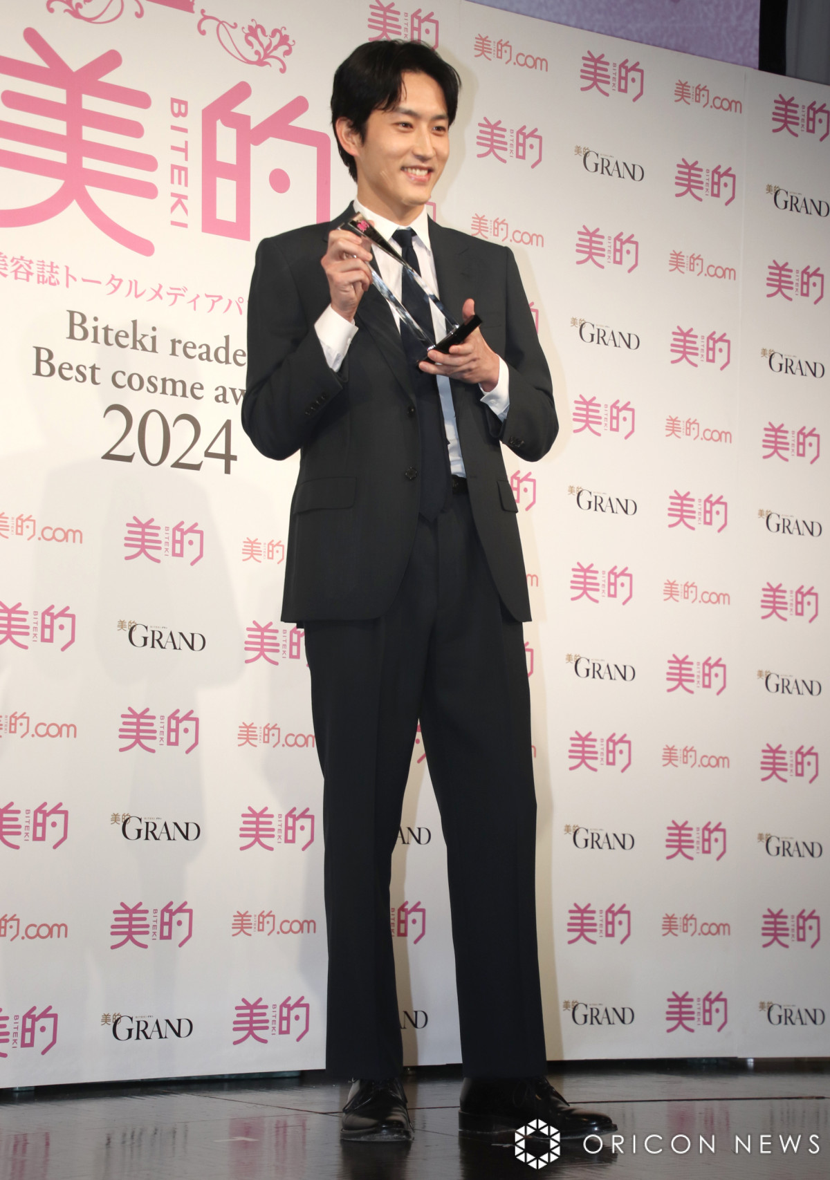 杉野遥亮、シックな黒スーツで授賞式 「美的ベストビューティマン」受賞で「きのうパックしました!」
