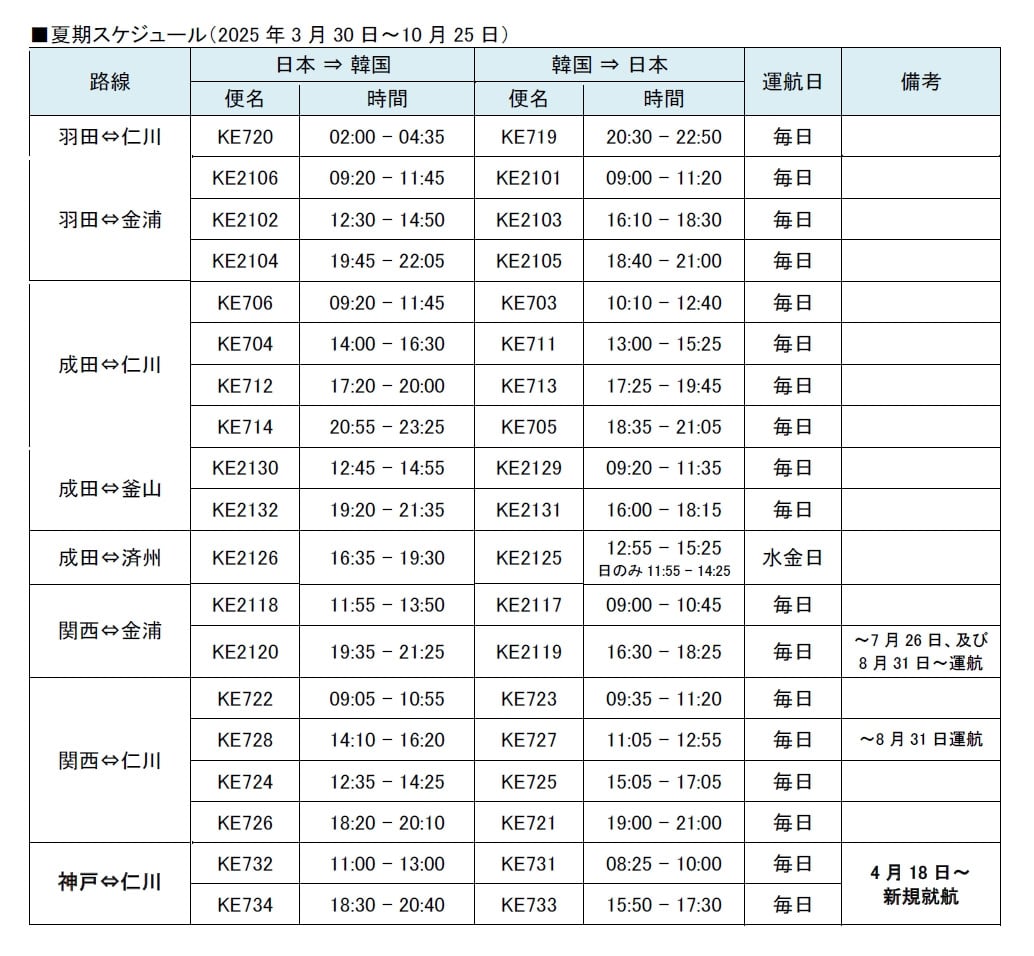 神戸空港が国際化! 韓国・仁川(ソウル)へ毎日2便、4・18就航・詳細発表【大韓航空夏期スケジュール全国一覧】