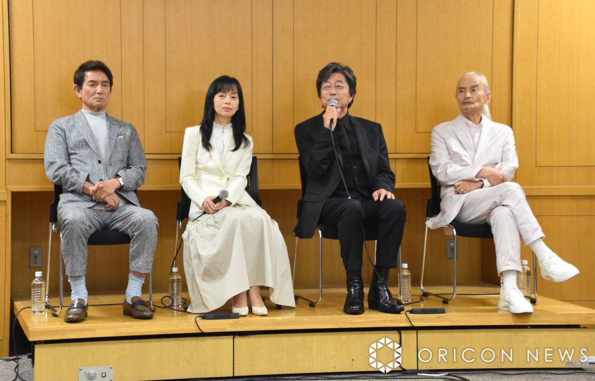 ドラマ『俺たちの旅』制作発表記者会見に登壇した(左から)田中健、岡田奈々、中村雅俊、秋野太作 (C)ORICON NewS inc. (4/7枚)