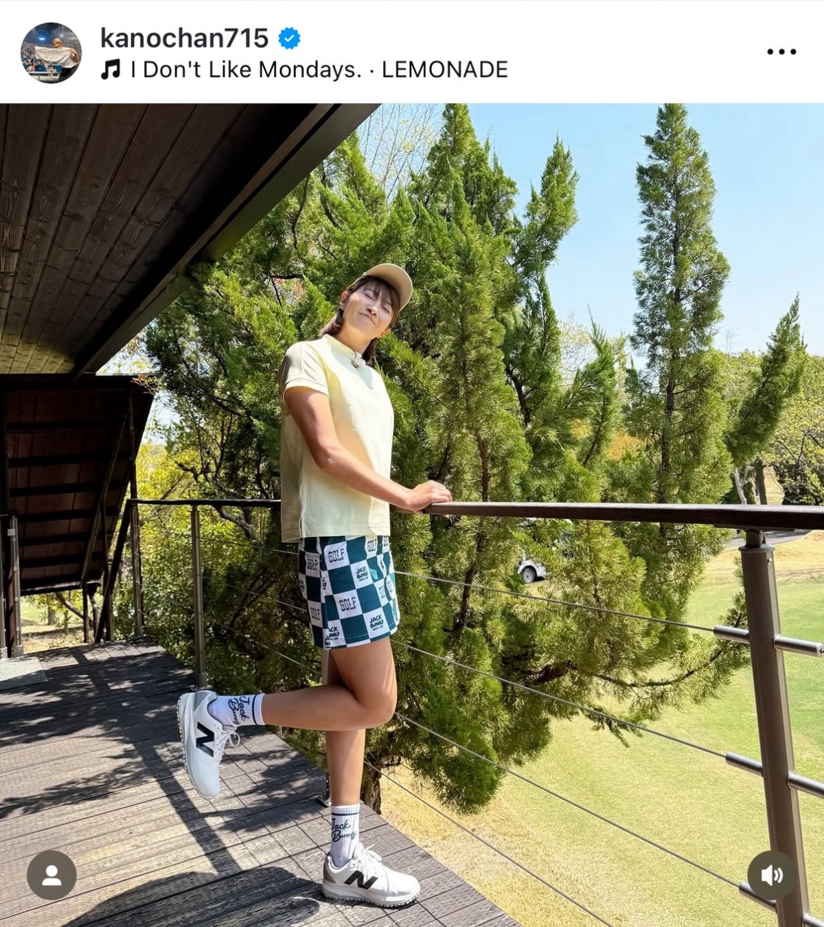 狩野舞子「普段はモノトーンが多いけど、ゴルフ場ではカラフルなウェアを着たくなるという不思議…」(写真はインスタグラム@kanochan715より) (2/4枚)
