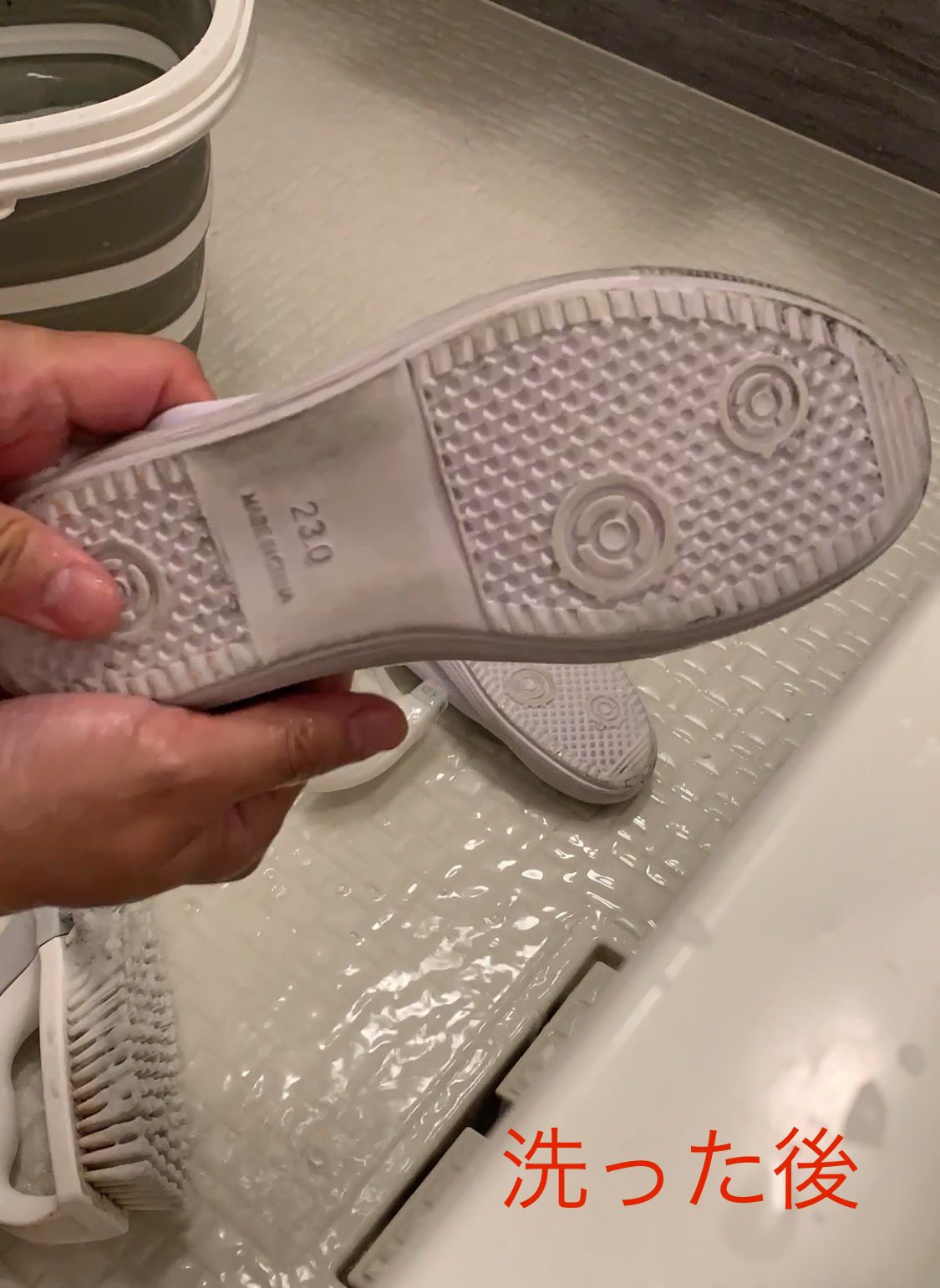 「バスマジックリン」で洗った後のキレイな上履き(画像提供:はやsanさん@hayasan_jp) (2/5枚)
