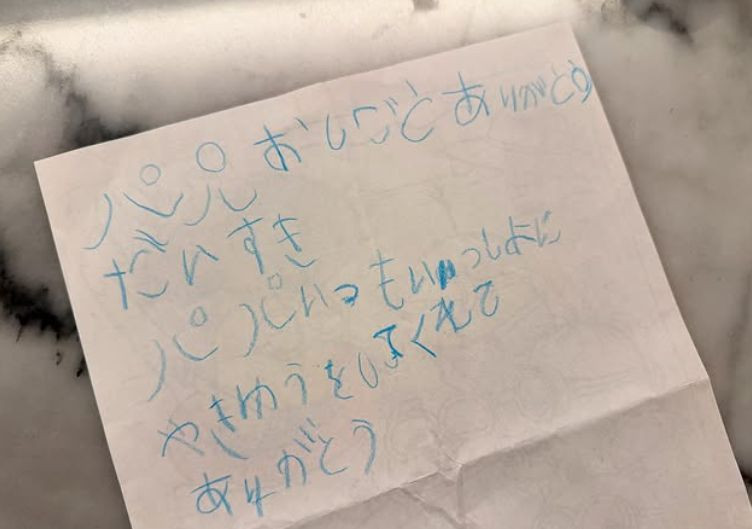 ますだおかだ・岡田圭右が公開した4歳息子からの手紙(写真はインスタグラム @okada_wao より) (2/4枚)