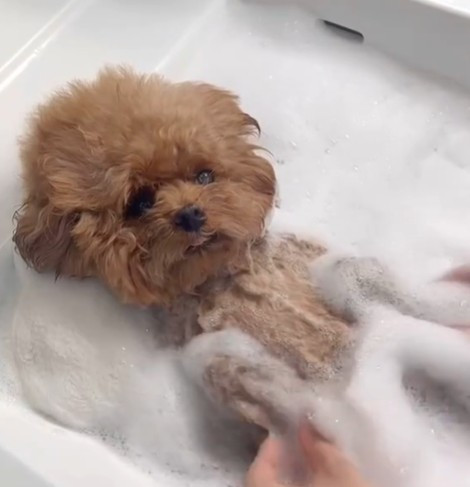 「スターウォーズのチューバッカ」「こんな犬見たことない」…本当に犬なのか疑われたトイプーの入浴姿に1457万回再生
