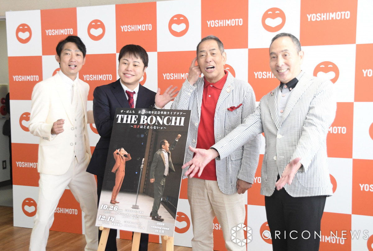 『 ザ・ぼんち芸道55周年記念単独ライブ〜漫才はとまらないッ〜』全国ツアー発表会見に参加した(左から)石田明、井上裕介、ぼんちおさむ、里見まさと (C)ORICON NewS inc. (11/11枚)