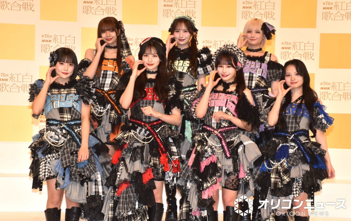 『第76回NHK紅白歌合戦』初出場会見に登壇したCANDY TUNE(前列左から)福山梨乃、立花琴未、村川緋杏、桐原美月(後列左から)南なつ、小川奈々子、宮野静(C)ORICON NewS inc. (50/107枚)