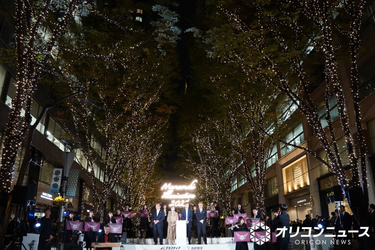 『丸の内イルミネーション 2025』点灯式に登壇した(左から)吉田淳一氏、小池百合子都知事、樋口高顕氏、中島篤氏 (C)ORICON NewS inc. (9/9枚)