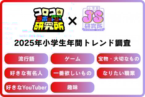 小学館は、「JS研究所」(小学校低学年女児向け雑誌『ぷっちぐみ』調べ、少女まんが誌実売連続部数No.1『ちゃお』調べ)と「コロコロコミック研究所」(男子小学生向けマンガ雑誌『コロコロコミック』調べ)それぞれの読者を対象に実施したアンケート調査結果を発表した。現代の小学生のリアルな実態として共同で分析したもので、流行語、趣味、将来の夢など計8項目にわたる調査結果から、今の小学生(α世代)の多様な「好き」と「価値観」に迫っている。