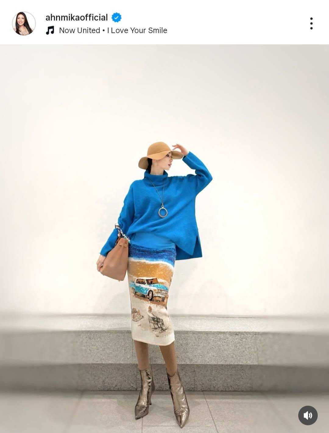 “ブルー×ベージュ×白の3色コーデ”を披露したアンミカ(写真はインスタグラム @ahnmikaofficial より) (2/6枚)