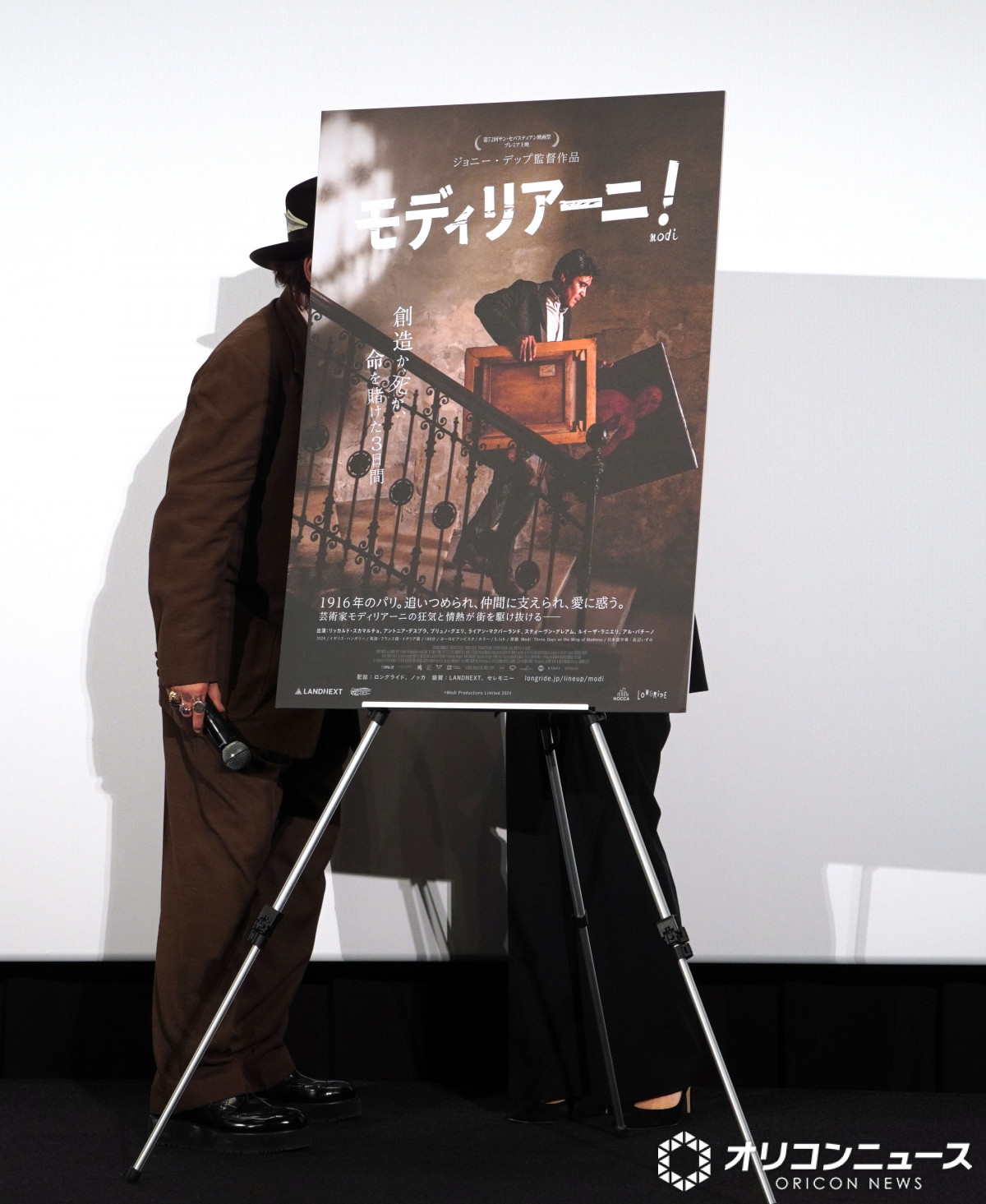 ジョニー・デップ、壇上で大はしゃぎ 通訳に接近 ポスターの裏に隠れる