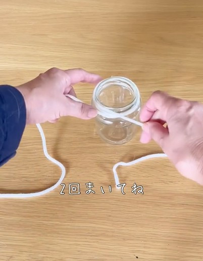 1)まずは、ビンのくびれ部分にぐるっと2回ヒモを巻く。そして…(写真提供@mido_botanical) (2/7枚)