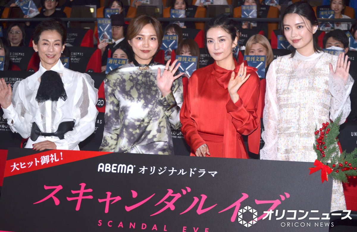 ABEMAオリジナルドラマ『スキャンダルイブ』大ヒット御礼トークショーに登壇した(左から)鈴木保奈美、川口春奈、柴咲コウ、茅島みずき (C)ORICON NewS inc. (6/7枚)