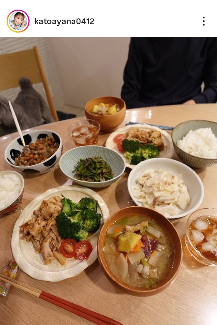 加藤茶の妻・加藤綾菜「全て手作りです」 彩りも豪華な「加藤家の食卓」を披露「カトちゃんへの愛がー」「栄養満点の料理」「器がどれもステキ」